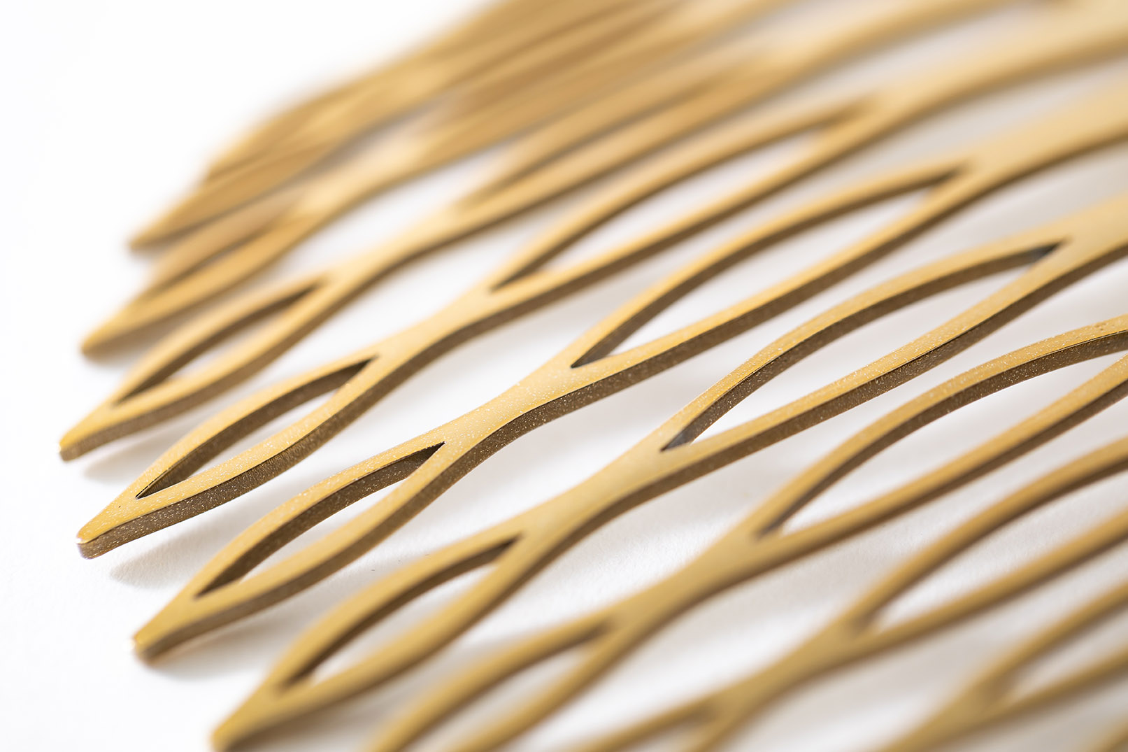 このときも若山社長が弊社の無理な依頼を受け止めて、「コーム本体だけではなく、デザインによって生じた背や歯の隙間部分にも色を入れられますが、どうですか?」と大胆な提案をしてくださったんです。「その隙間にさまざまな色で半透明の塗装をすると、ステンドグラスのようになりますよ」と。