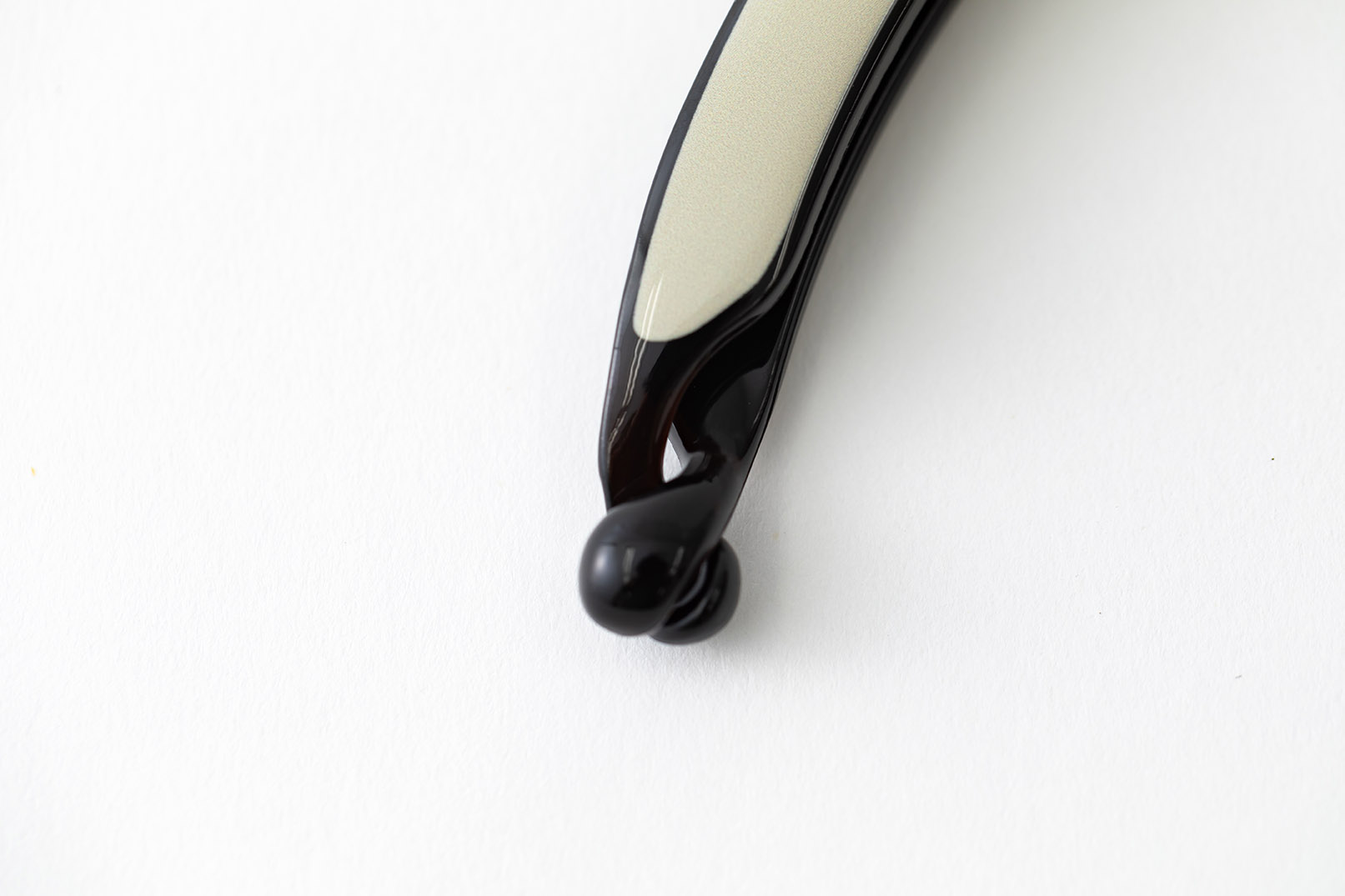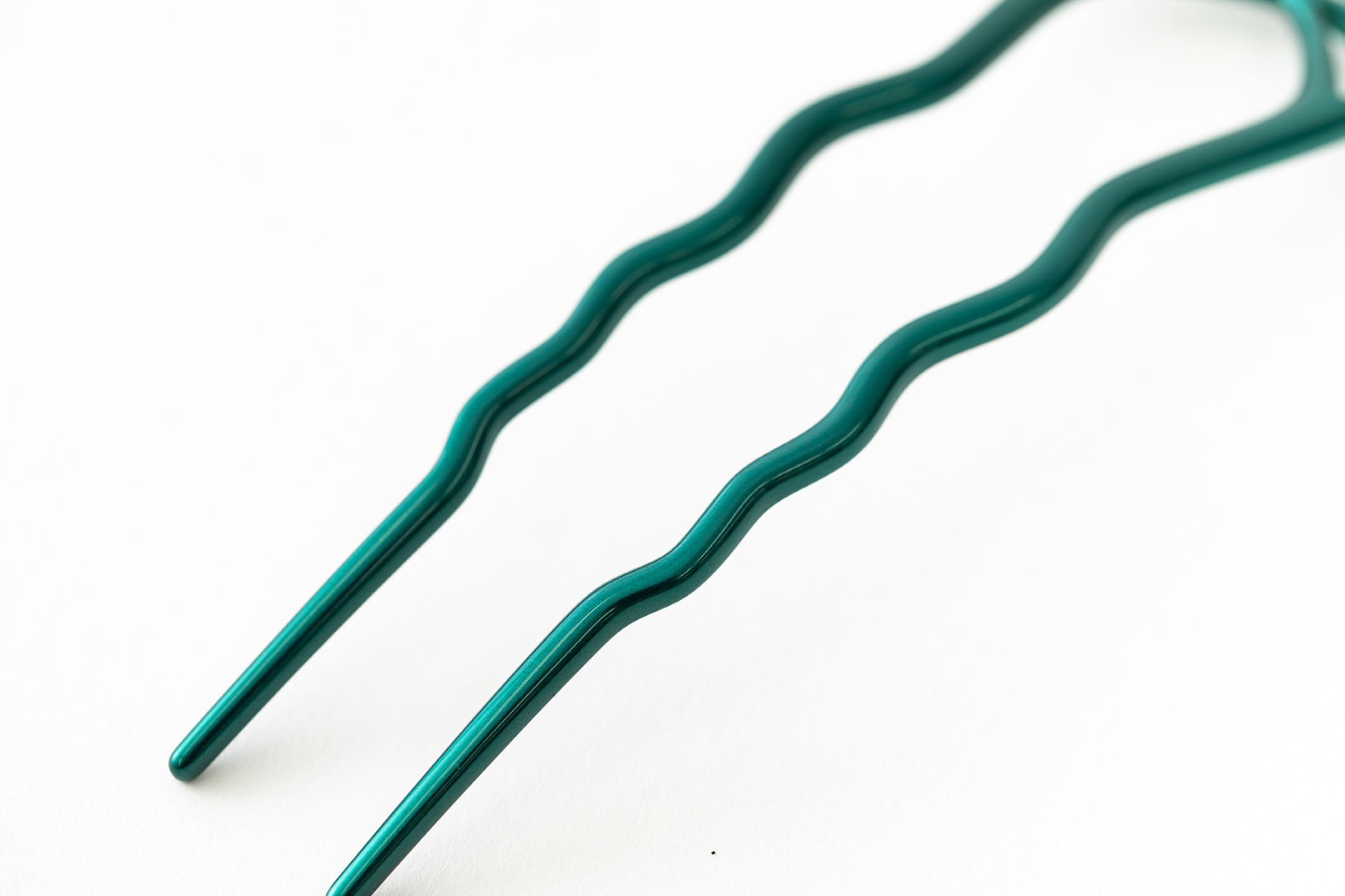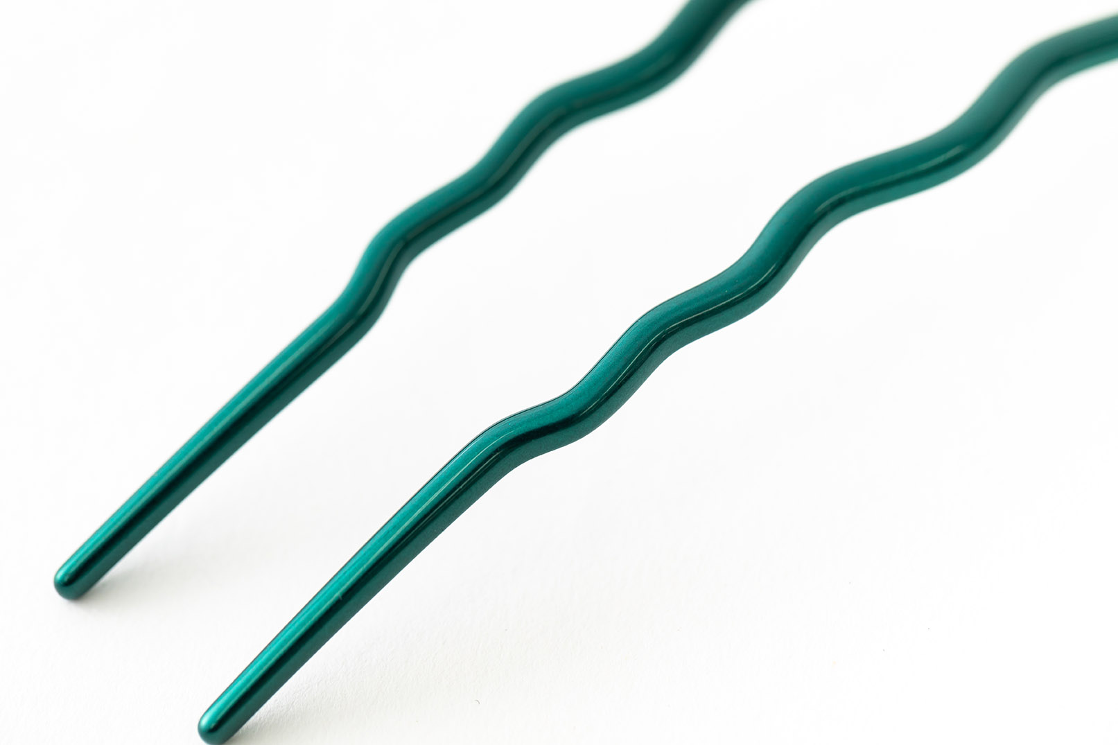 いえ、あのときはこちらのオーダーが雑でしたので(笑)。「グリーンのジャガーのような緑で塗ってください」というざっくりした依頼を受けて、ワカヤマさんの職人の方々も困ってしまったと思います。それでも最初からこちらがイメージした通りの緑を塗ってくださったので、本当に感心しました。ただ、実際にスティックを髪に挿すと、せっかくの素敵なグリーンが黒髪に埋もれて沈んだ色に見えてしまって……。